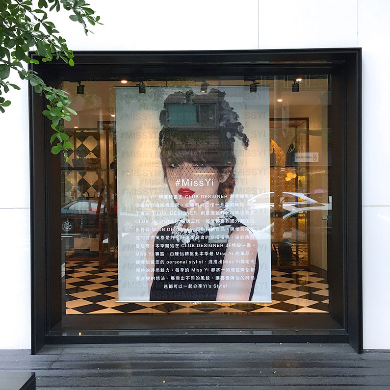 “Miss Yi” 精選特區由CLUB DESIGNER創意總監陳怡親自打造風格空間。從事時尚工作十多年的陳怡,除了擔任CLUB DESIGNER創意總監外,也負責CLUB DESIGNER採購工作,每季都要到國外親手挑出符合CLUB DESIGNER高規格的商品。陳怡前衛率性的穿衣風格是許多時尚愛好者的穿搭指標,由於詢問度超高,本季開始在CLUB DESIGNER 3F特設一區- Miss Yi專區,由陳怡精挑出本季最Miss Yi的單品,讓陳怡當您的personal stylist,混搭出Miss Yi鮮明而獨特的時尚魅力
