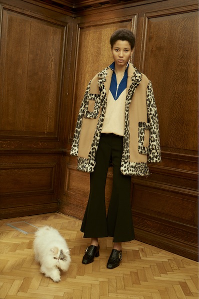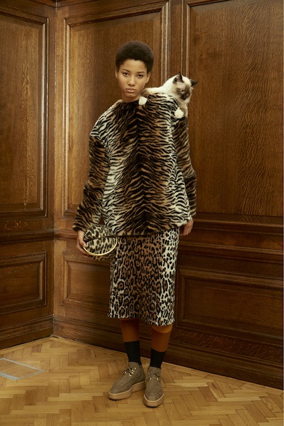 既性感又帶著一點幽默,本季大膽的用美洲豹和老虎的動物紋路等點綴在提花布、刺繡和人造皮草上。屬老虎的人造皮草棒球外套搭配美洲豹上衣褲子的造型最為吸精。 放肆無度的波斯貓在成了本季早秋的中心思想,也將這位主角印製在印花當中,時不時的以手繪的圖樣上衣長褲呈現輕盈感或是像壁毯般的貓圖樣提花織布大衣展現其厚重,在造型和剪裁上也讓人感受到貓的變化多端。