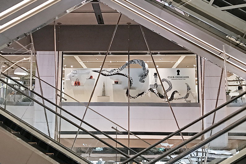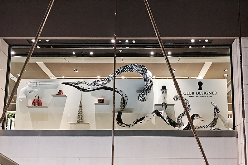 今年聖誕節,CLUB DESIGNER特別在重新盛大開幕的新光三越臺北信義新天地A4店,打造以搖滾絲巾為靈感的大型聖誕藝術櫥窗,替信義區增添濃濃時髦氛圍。
